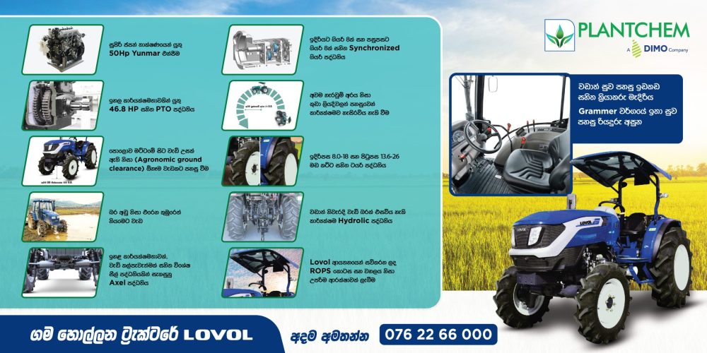 - 50HP, 4WD tractor with factory-fitted AC cabin – only model in this segment in Sri Lanka.